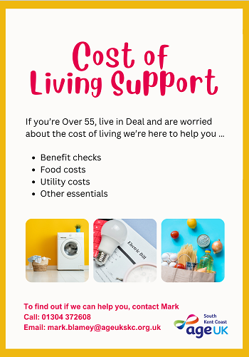 There is also cost of living support for those aged 55+ in Deal, providing help with cost of food, fuel, white goods and other essential items. (Deal food bank are supporting under 55s). The scheme is running across the district, more info here or email Mark at mark.blamey@ageukskc.org.uk